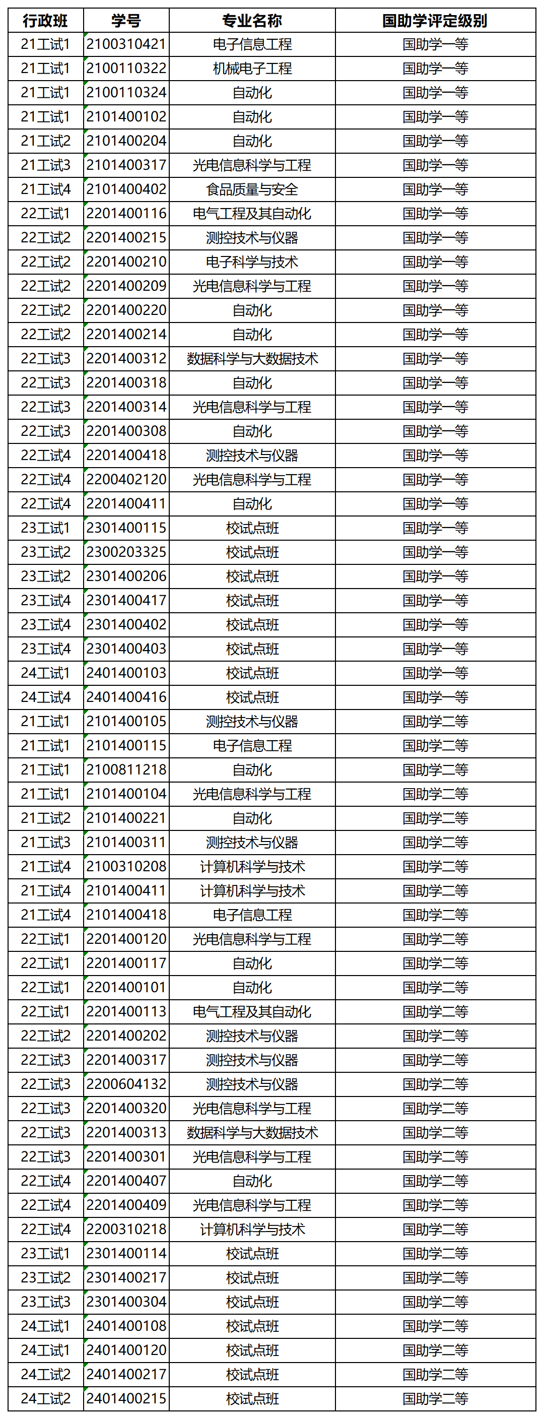 依据《bat365在线中国官网登录入口本科生国家助学金实施细则》,经学生本人报名,学院审议,拟推荐下图中57名同学为国家助学金获得者人选。